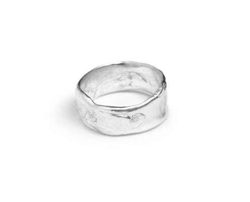 La fotografia analogica si basa sul nitrato d’argento (AgNO₃) che, combinato con altri elementi, crea gli aluri d’argento che hanno permesso le prime fotografie nel 1839. Questi anelli sono realizzati con l’argento recuperato dai prodotti chimici esausti del nostro laboratorio. Sono composti al 92,5% d’argento e al 7,5% di rame.